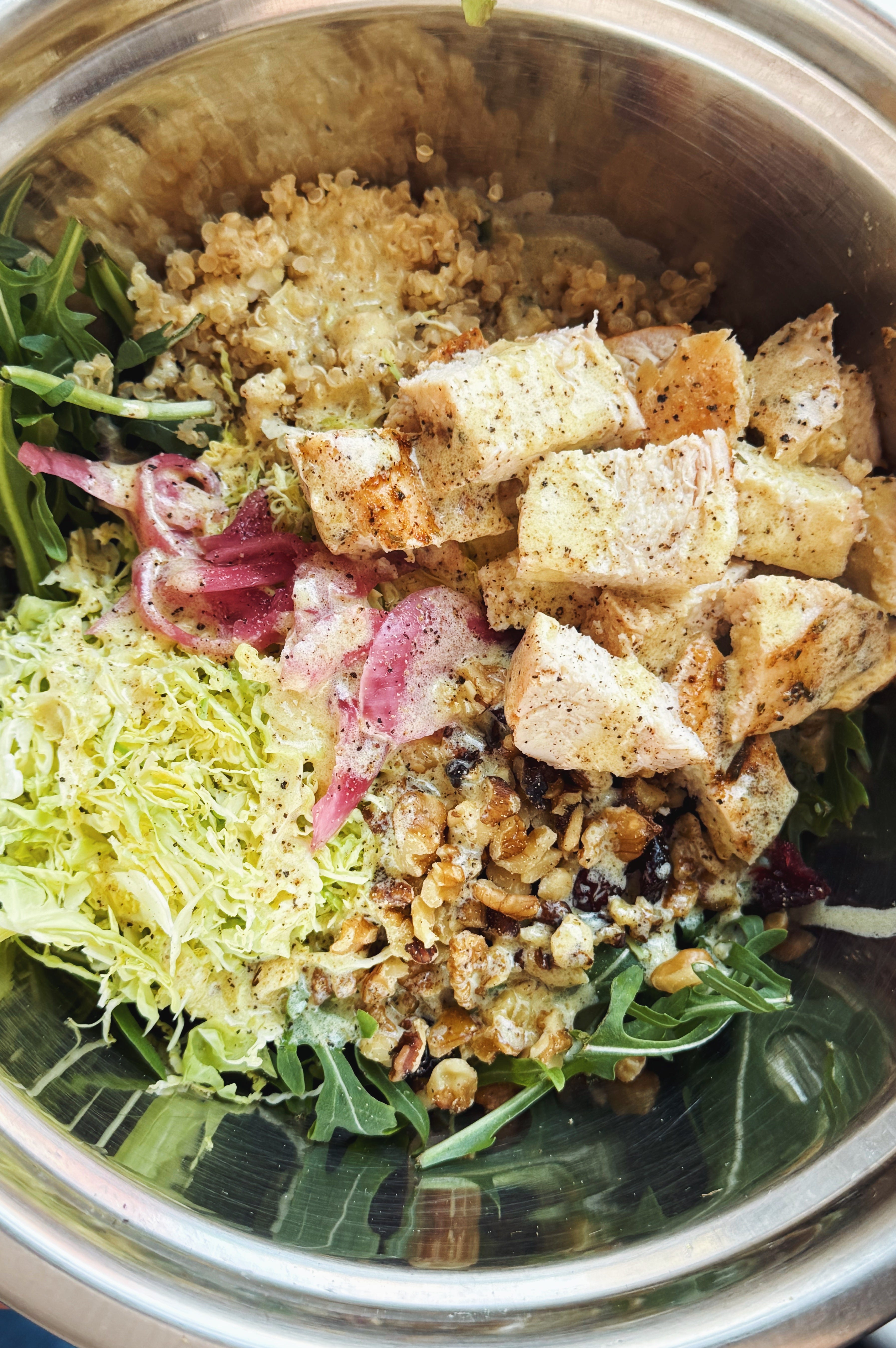 The salad was perfect. Light enough to keep energy steady, substantial enough to carry me to dinner. Crunchy, fresh, satisfying. She told me she’s been making some version of this same salad for nearly ten years.