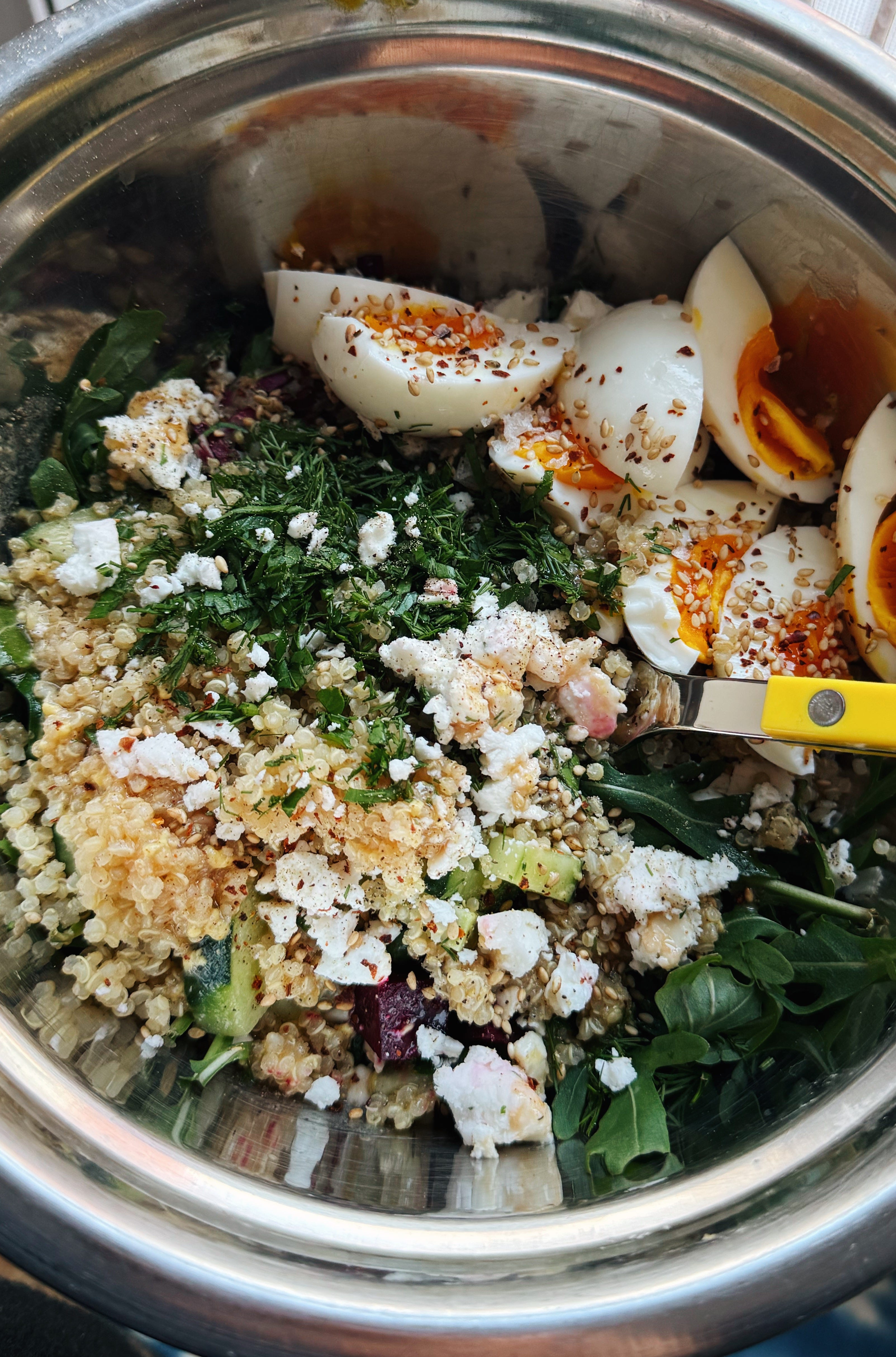 Then just add whatever vegetables, herbs, crunch, or cheese you have on hand… and you have a deeply satisfying bowl.